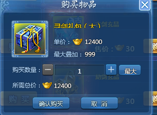 寻剑礼包(大)因显示不全,实际价格12400元宝